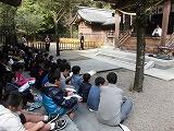 今回は狭野神社の歴史の説明をしていただきました。子どもたちは、初めて学習することをしっかりと聞いてメモを取っていました。また今回は、狭野神楽も見せていただきました。神聖な舞のすごさに、子どもたちも真剣に見ていました。