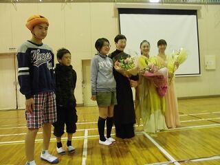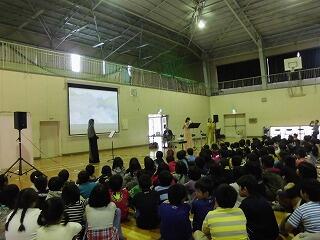 今週の月曜日の3校時は、体育館で「古事記語りの世界」公演が行われました。これは、最古の歴史書の古事記を通して、「神話のふるさと」宮崎に対する知識や理解を広げ、郷土に対する誇りと郷土愛をもたせる目的のもと行われました。神様の物語に託して語られる神話の世界を、語りと映像と音楽を通して感じ取らせようと行われました。語りをされた女優の柴田美保子さん、歌手の鈴木富保子さん、フルート演奏の中山千佳子さんによるすばらしい「神話の世界」を見せて頂きました。