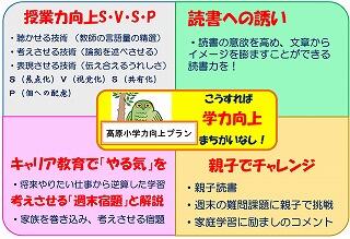 「高原小学力向上プラン」を一部リニューアルしましたのでお知らせします。今回のアンケート結果を受け、『親子でチャレンジ』の部分が追加されています。