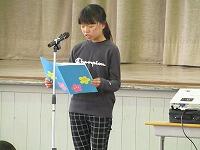 本日の朝の時間は児童集会があり、給食委員会と保健体育委員会の子どもたちが発表を行いました。