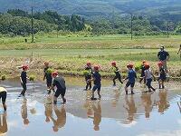 梅雨とは思えない、恵まれた天候の中、5年生が田植えを行いました。