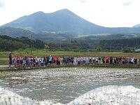 泥だらけになりながら、子どもたちは上手に植えていました。