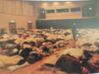 <避難所の様子> <「灰」の除去作業>