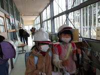 - 学校生活への影響~プールの閉鎖、窓の開閉不可、ヘルメットの着帽 給食の際の灰侵入予防等