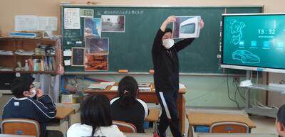 訓練は、まず学級活動で新燃岳の噴火の被害について学びました。