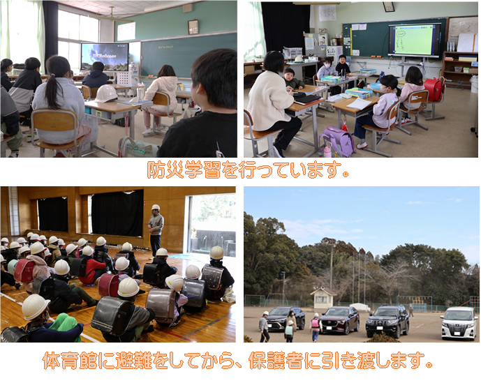 これは、平成23年1月26日に起こった噴火災害を受けて、高原町内の学校で毎年実施しているものです。午後に各学級で防災学習を行った後、実際に町本部より避難指示の連絡が入ってから保護者に引き渡すまでの動きについて、本番さながらに確認しました。