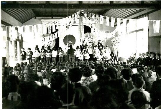 来年度は、高原町は小学校が1校に統合されることになっています。本年度が、広原小学校最後との年となります。子どもたちに、広原小学校の歴史にも興味をもってほしいとの思いから全校集会では、折に触れ、昔の広原小学校の話をしております。5月1日の全校集会では、昭和49年に行われた創立百周年記念の様子の写真を見せながら昔の学校の様子について話をしました。昭和20年頃は現在と違い、200名ほどの児童がいたこと、水は、近くの川に水車があり、その力で水をため、飲料水などに使っていたこと、物資が少なく、裸足で登校していた児童もいたことなどを話しました。昭和50年に創立百周年の記念誌が発行されており、これが大変参考になりました。