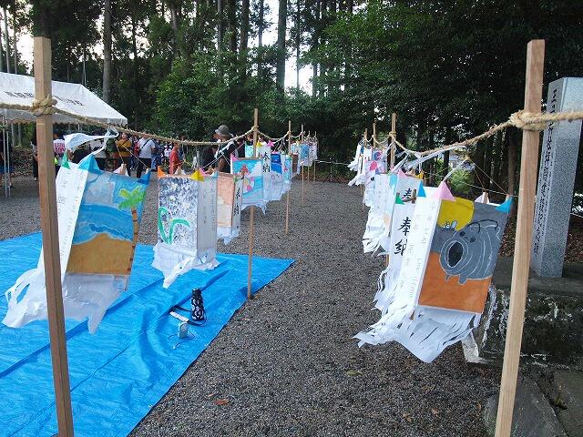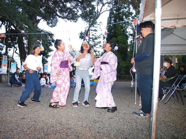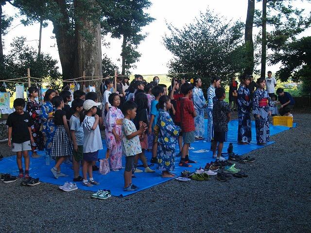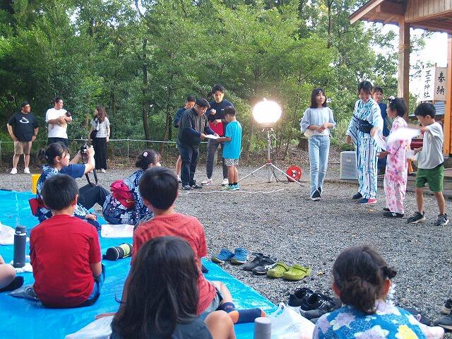 神社には子ども達が作った六月灯が飾られ、ど子ども達は、どんな作品を作ったのか、工夫したことなどを発表しました。そのあと、パン食い競争などをして盛り上がりました。途中で、にわか雨が降るなどハプニングもありましたが、思い出に残るたのしい六月灯になりました。