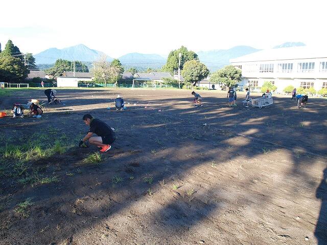 8月31日(日)の早朝7時より、奉仕作業がありました。9月20日に運動会を控えているため、今回は、運動場をきれいにしていただきました。しかし、8時すぎになるとやはり日差しが体にこたえます。保護者や子供たちのおかげで、運動場がとてもきれいになりました。ありがとうございました。