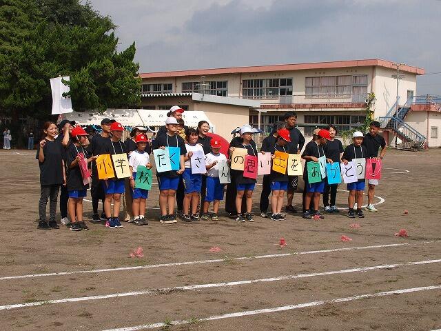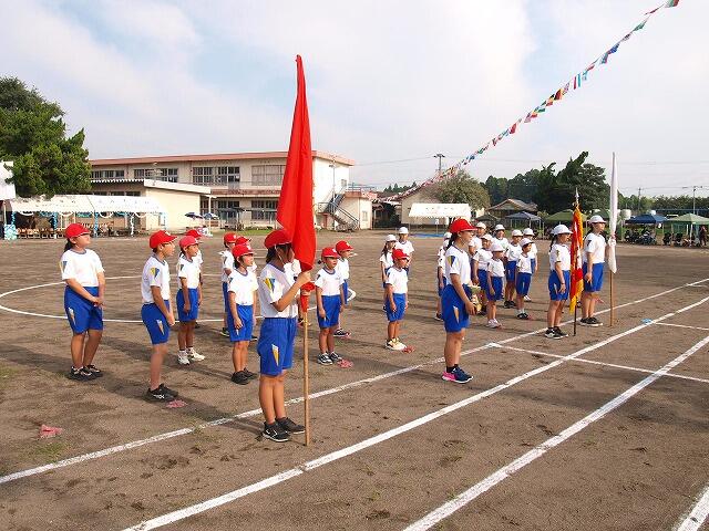 広原小学校最後の運動会でした。開会式では、子どもたちが「絆を紡げ! 広っ子軍団 心を燃やせ! 広っ子魂」のスローガンを大きな声で唱和し、大会への思いを深めていました。