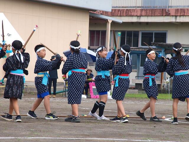 伝統芸能の棒踊りは、本年度は全校児童で披露しました。この発表も今年で最後かと思うと目頭が熱くなりました。2年生にとっては初めての棒踊りでしたが、一生懸命に踊っていました。