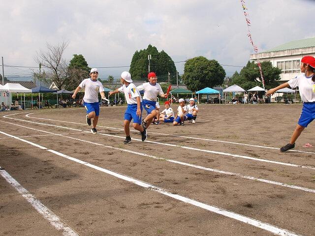 リレーでは、友達にきちんとバトンをつなぎながらゴールを目指して走っていました。