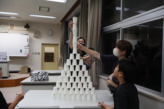 9月25日の夜、家庭教育学級がありました。今回は、相良トレーナーを講師に迎え、紙コップタワーづくりにチャレンジしました。紙コップやピンポン玉を用いた連携ゲームやおじゃみを積み上げることから段階的に紙コップタワーづくりに移行していく工夫があったので、みんな活動がしやすく、協力して取り組むことの心地よさを感じました。また、共働き世帯が多い現代の家庭環境下では、親子のコミュニケーションをとる機会が少なくなってしまうことが心配されるところですが、親子で関わる時間をもつことの大切さを感じました。