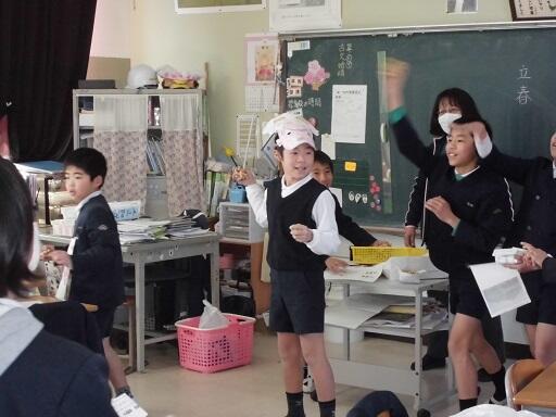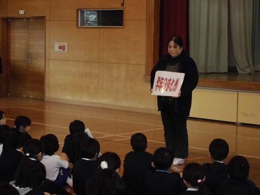 早いもので今日から2月です。業間に全校集会がありました。田鍋校長先生と学習担当の片野坂先生が「残り2ヶ月、学年のまとめをしっかりしましょう。」と話をされました。また、田鍋校長先生から「2月3日は何の日ですか。」と子どもたちに問いかけ、子どもたちは「節分!、豆まき!」と答えていました。