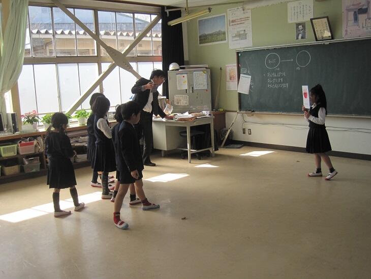 先月後半から今月の前半にかけて、1年担任の瀬川教諭の出張があり、1年生の授業をする機会がありました。国語や算数、道徳などの授業をしましたが、発表態度に大変感心しました。「・・・と思います。みなさんどうですか。」「わかりました。」など、7人全員がしっかり発表できます。また、授業中の机上は、鉛筆2本、消しゴムと最小限の学習用具ですっきりしています。さらに、教室背面の棚の整理もしっかりできています。整理整頓された教室環境が、子どもたちの学習態度をよくしていると思います。私も1年生と楽しく授業や休み時間に交流できて大変有意義な一日が過ごせました。