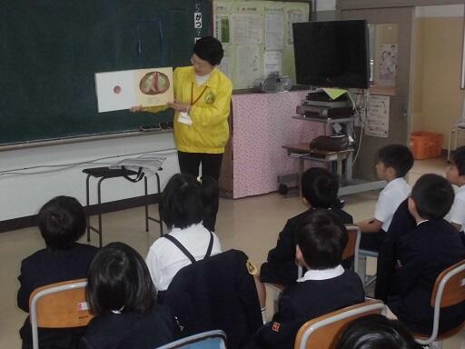 今日は読み聞かせの日です。毎回、「ぽぽんたの会」の皆様が、朝の時間に読み聞かせをしていただいています。子どもたちは、机を後に下げ、椅子だけになって読み聞かせに聞き入っています。「ぽぽんたの会」の方は、子どもたちの学年に応じた本を選定され、表情豊かに読んでくれます。時に子どもたちの笑い声が聞こえることもありますが、静かな時間が学校に流れています。子どもたちの心の栄養や落ち着いた学習のための特色ある教育活動になっています。