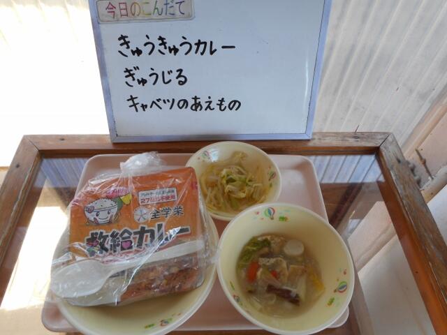 「救給(きゅうきゅう)カレー」は、東日本大震災のときに、給食の提供ができなくなり、電気やガス、水道などが使えない中で「命をつなぐ」非常食として作られたものです。