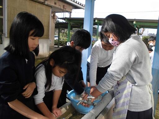 4日(日)の交流もちつきに向けて準備に取り組みました。この作業は昨年までは学級委員さんたちを中心に保護者がしていた準備です。今日は1・4・5年生が2校時に容器洗いや杵の水付け等に取り組みました。その後、3校時に2・3・6年が米はかり、米洗いに取り組みました。どの時間も上級生が下級生に優しく教えながら丁寧に準備していました。あとは当日の天候が晴れになることを祈るばかりです。