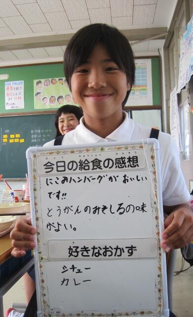 1学期前半、よく頑張ったごほうびですね(^^)給食インタビュー
