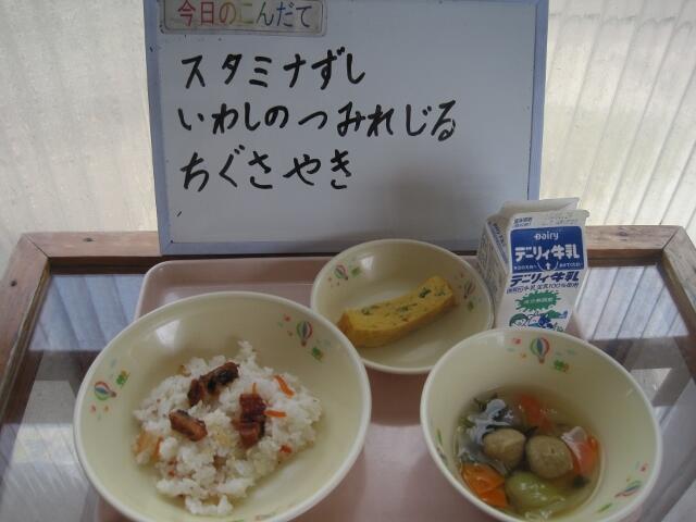 給食では、ひとあし先にうなぎを使ったスタミナ寿司が出ました!