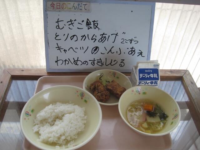 給食室で手間暇かけて、一つ一つ裏返しながら揚げてくださっています。