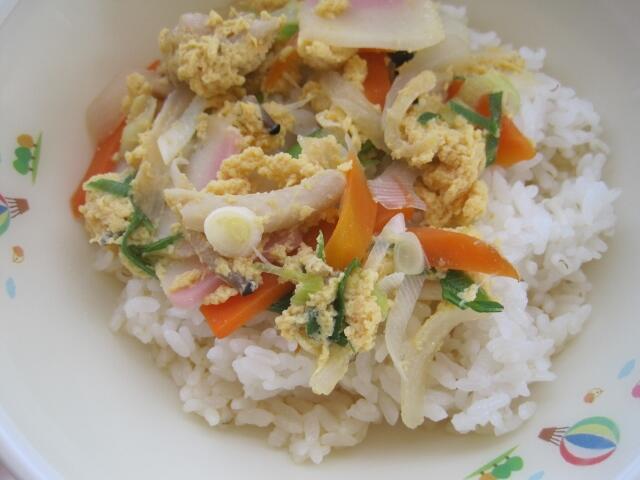 今日はご飯に具をかけて食べる親子丼でした。