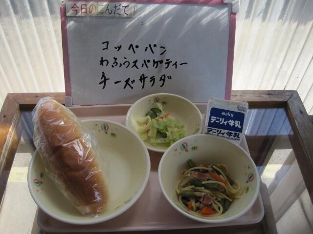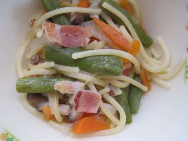 今日の給食は、野菜たっぷりな和風のスパゲティでした♪