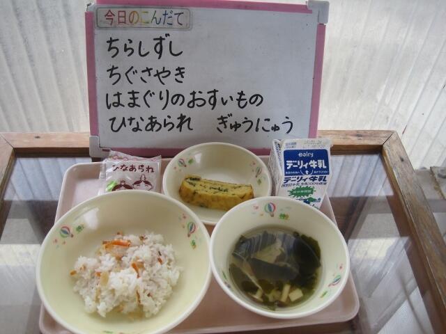 3月に入りました。少し早いですが、今日は「ひな祭り給食」でした。