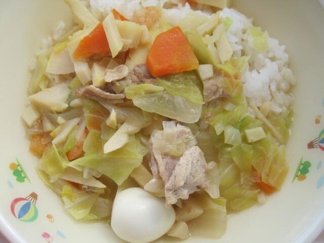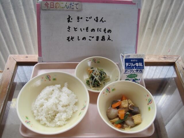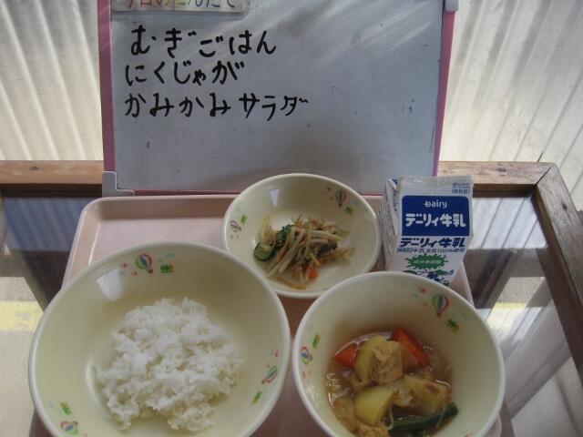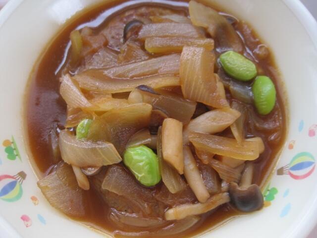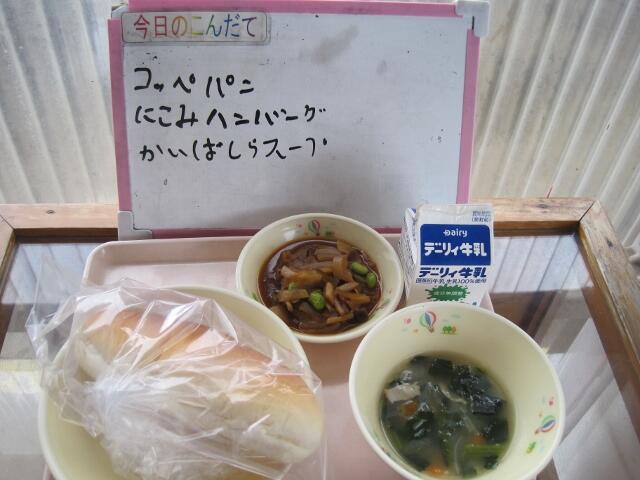 今日の「にこみハンバーグ」は町内の後川内小学校の