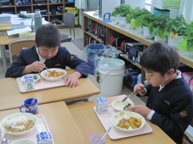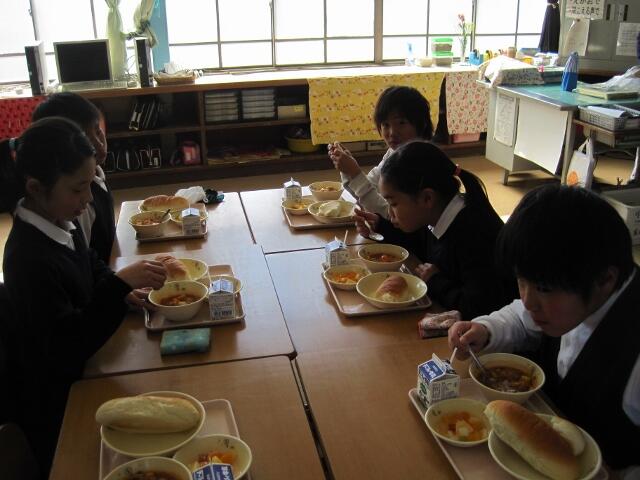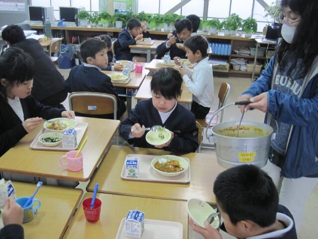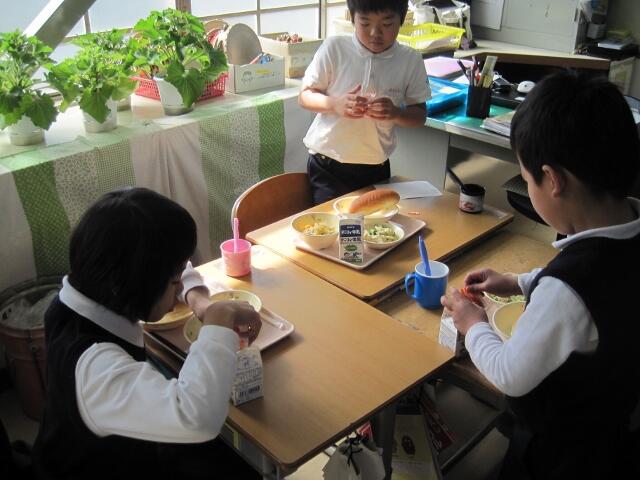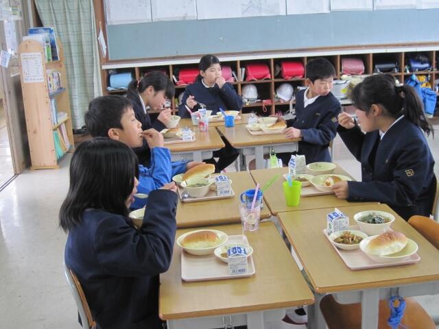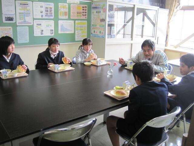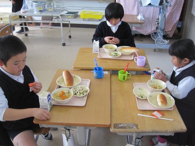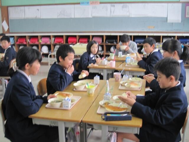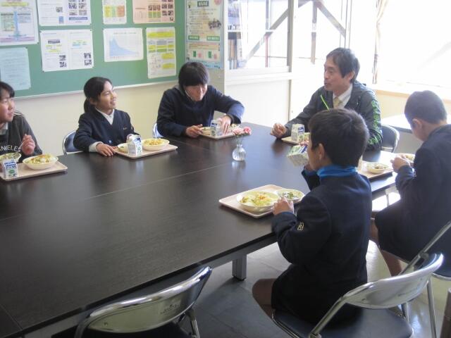 欠席者が多く、延期になっていた6年生の校長室給食も