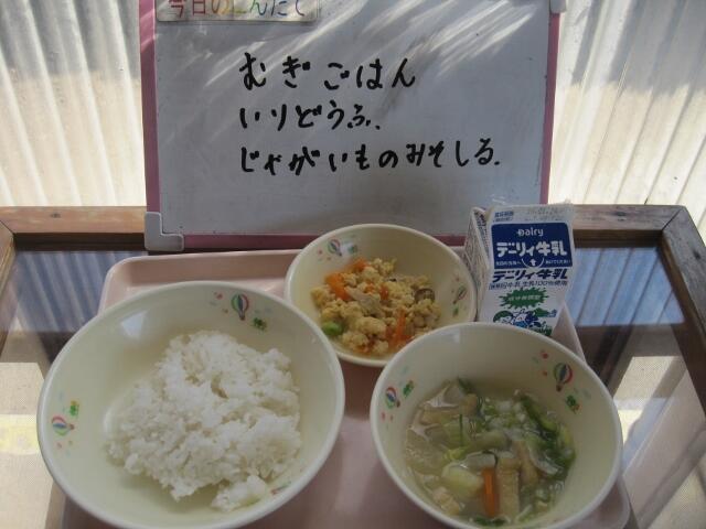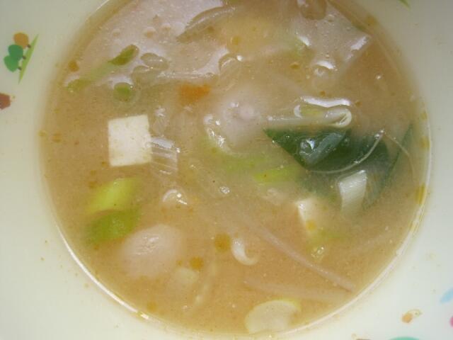 みそ汁は、大きめのじゃがいもがたくさん入っていて、