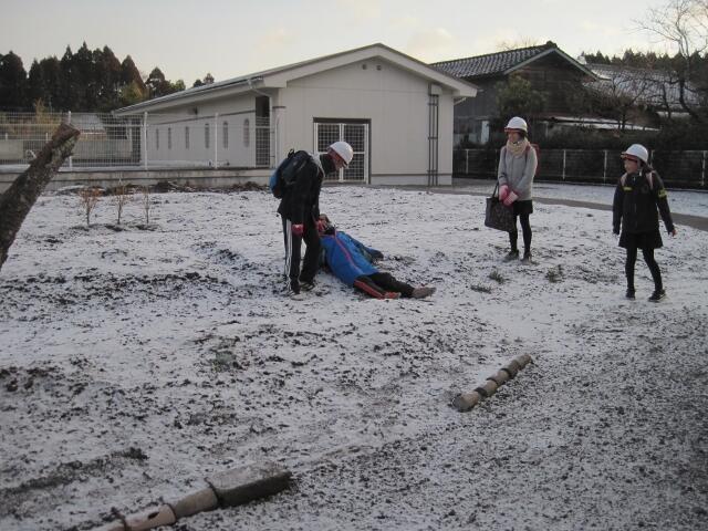朝学校に来てみると、昨晩から降った雪で真っ白でした!