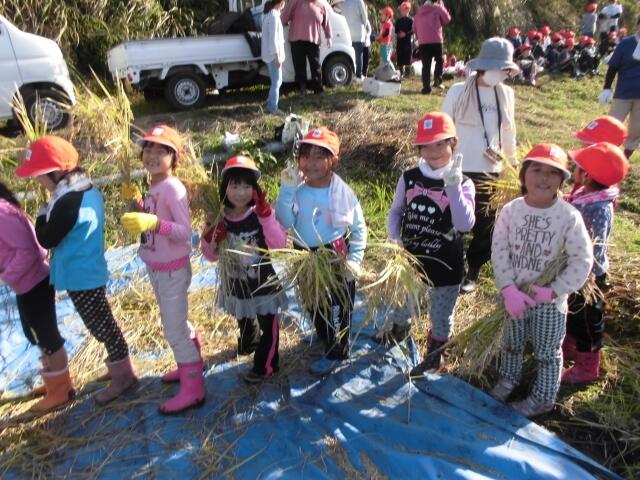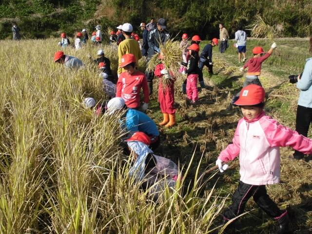 午後からは、みんなで広っ子田んぼの稲刈りをしました。