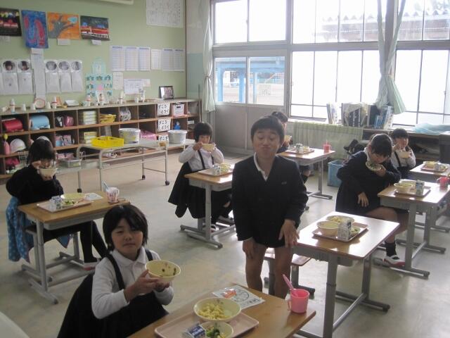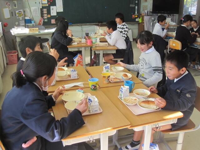 今日は5年生と一緒に給食を食べました。見事きれいに完食でした♪