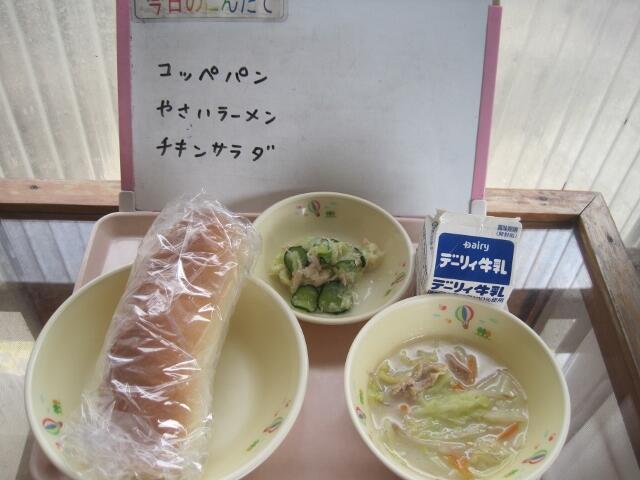 1年生のあるグループでは、パンにラーメンを入れて「ラーメンパン」作りに夢中でした。