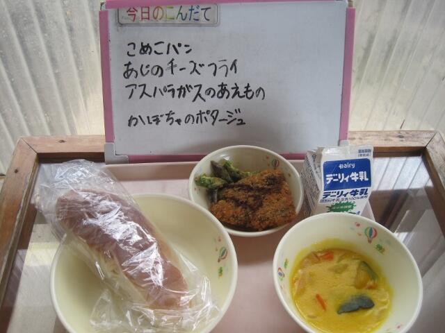 今日は米粉パンでした!もちもちとした食感で、ほんのり甘く、