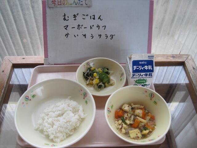マーボーどうふ・・・豆腐は、植物性の体に良いたんぱく質を含み、カルシウムやマグネシウムなどのミネラルも豊富です。
