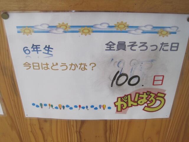 今日で全員が登校した日が「100日」を達成した6年生です。