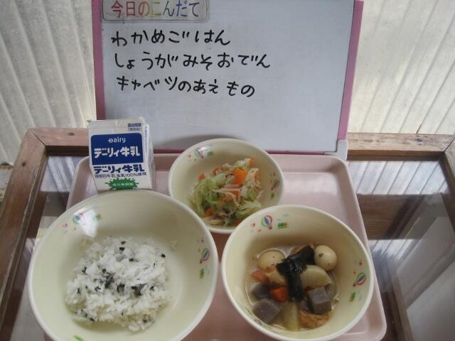 今日は青森県の郷土料理である「しょうがみそおでん」が出ました。