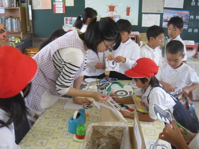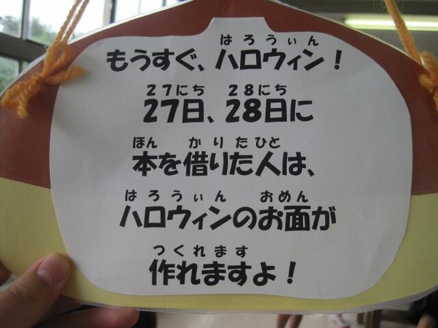 ハロウィンのお面作りが行われており、昼休みは大盛況でした!