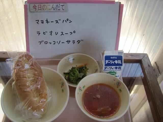 今日はトマトベースでした。ひらひらした形が可愛らしいですね。
