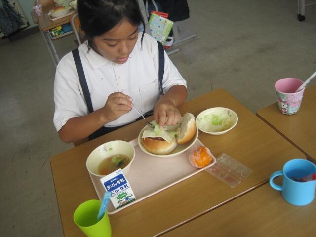 3年生教室では、ハンバーグをご飯にのせて食べている人もいました♪