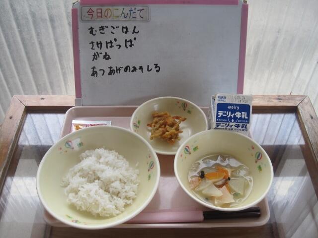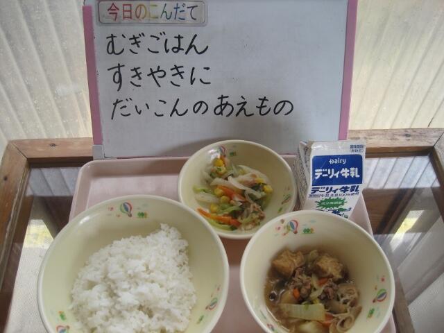今日は、担任の先生が出張なので、2年生と給食を食べました。