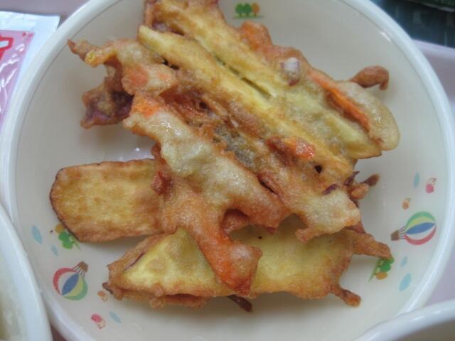 給食室で揚げたての「がね」はおいもホクホクで、おいしかったです。