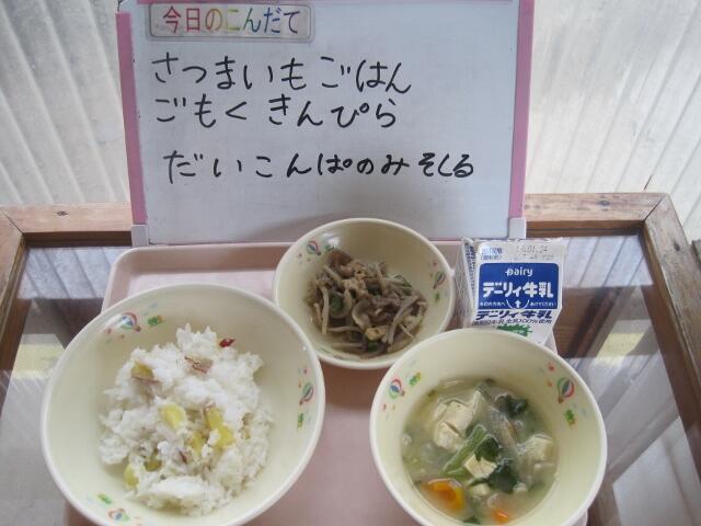 10月に入りました。今日の給食は、秋メニューで、今が旬の食材を楽しめました。