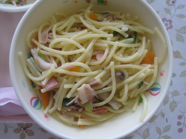 今日の給食では、人参や、もやしも入っていて野菜たっぷりでした。