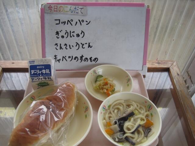 今日は、人気のうどんに山菜(さんさい)が入っていました。