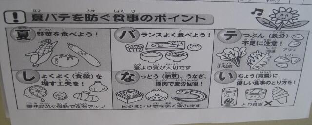 今月の献立表に、「夏バテを防ぐ食事のポイント」が掲載されています。