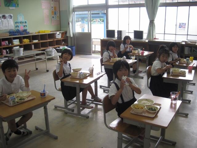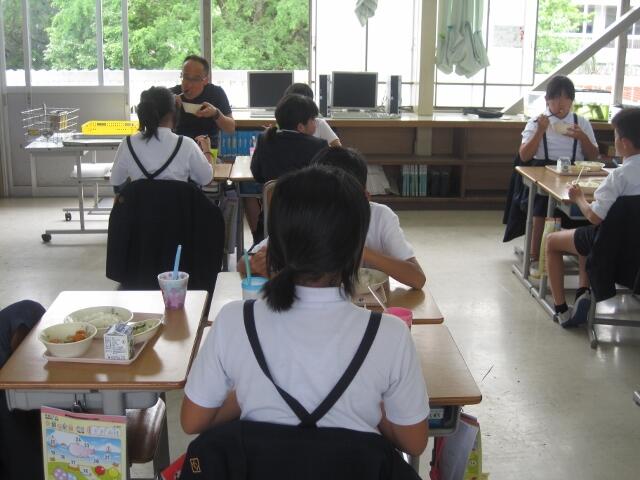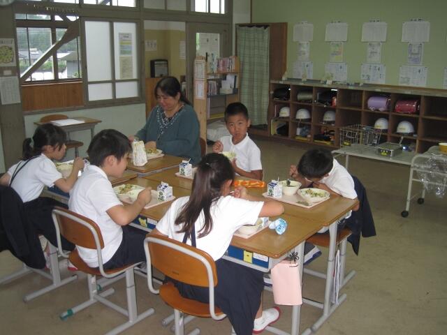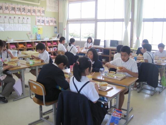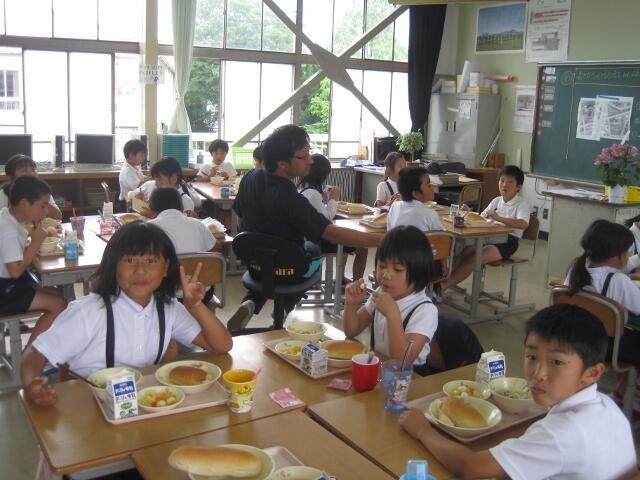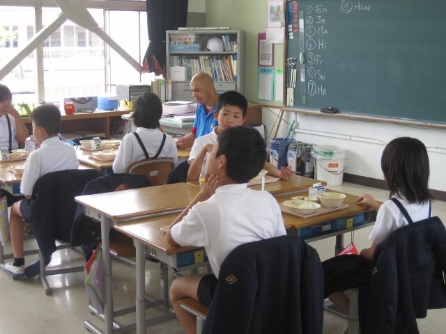 5年生と、ALTのジェフ先生の給食の様子をお届けします。