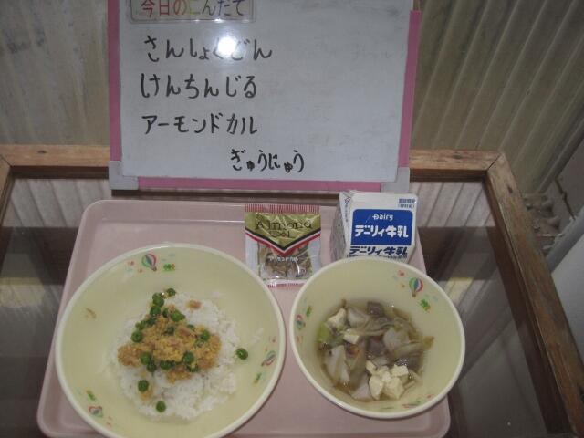 今日は、黄色、緑色、白色の見た目も鮮やかなさんしょくどんでした。